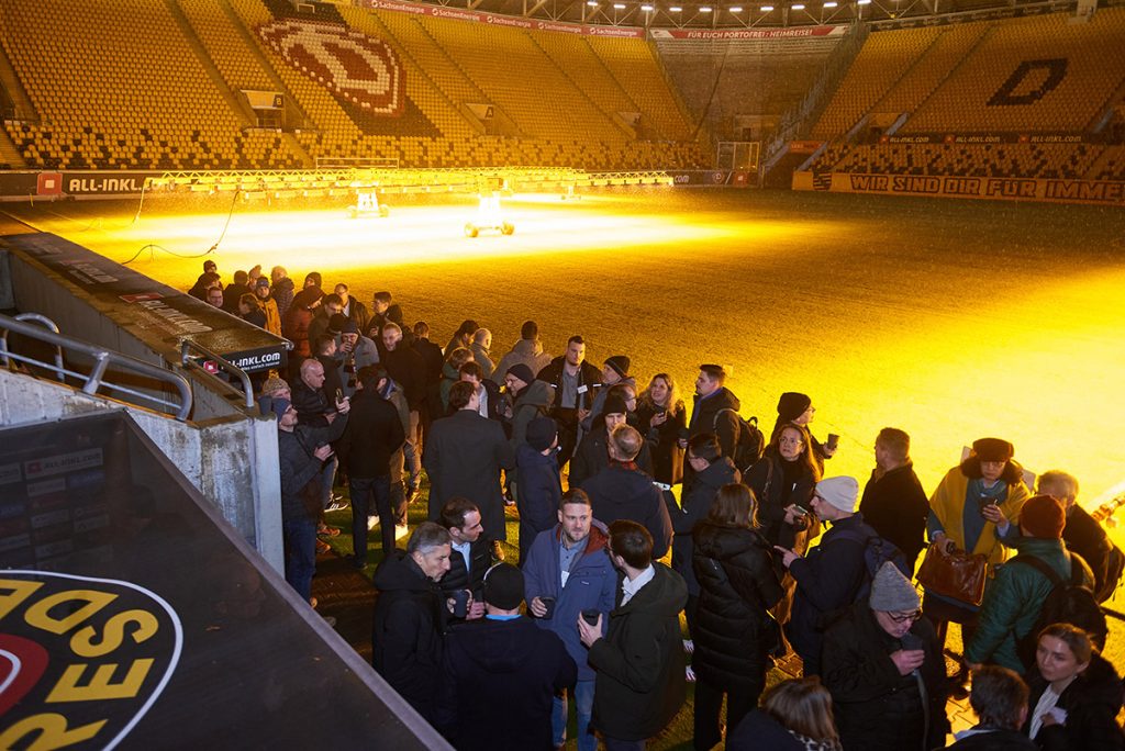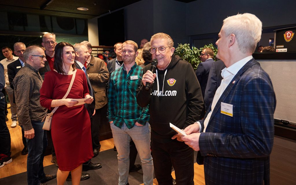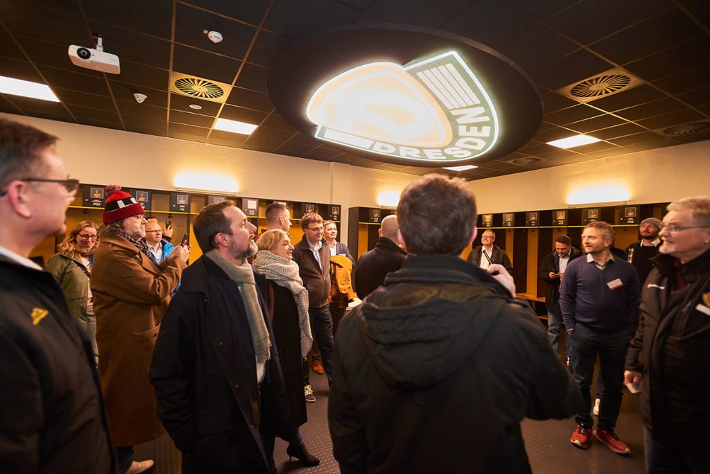 With a newly renovated VIP lounge, guided stadium tours including access to the Dynamo Dresden locker rooms, and plenty of space for personal conversations, the setting created a special atmosphere. A highlight of the evening: well-known stadium announcer Peter Hauskeller, who spent the entire night engaging with attendees, answering questions, and signing autographs.